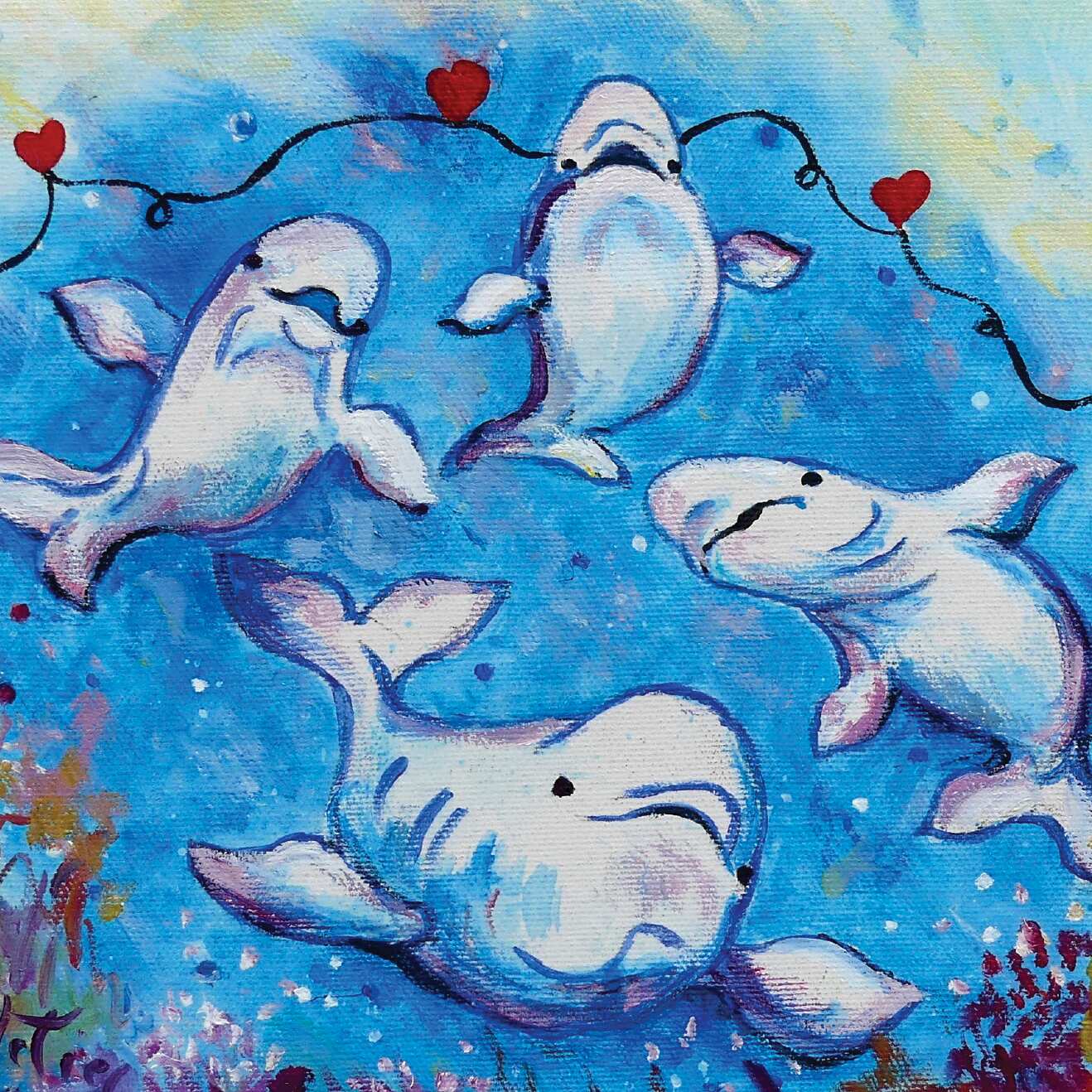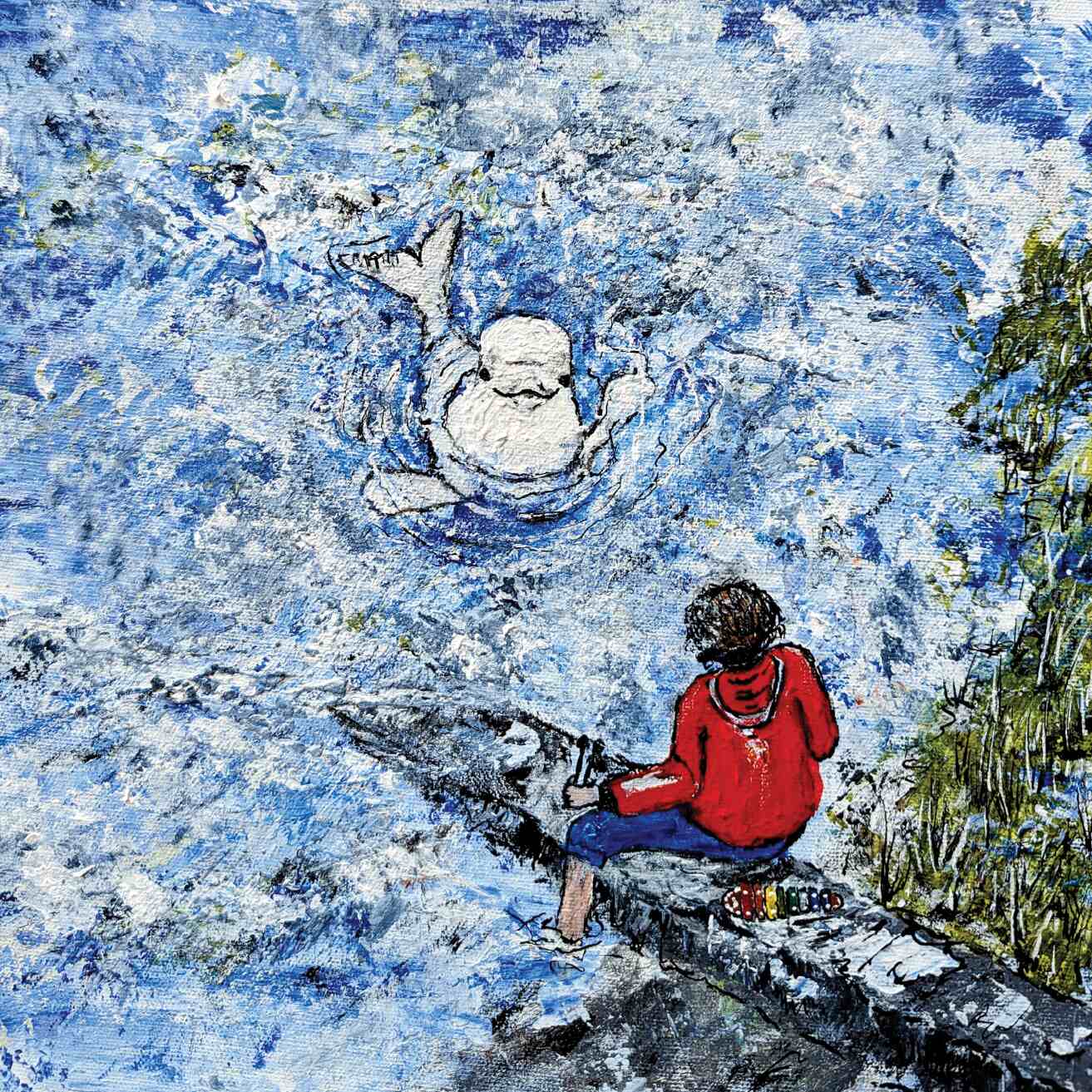 Xavier trépignait de joie à l’idée de cette rencontre inhabituelle. À son arrivée au bout du grand quai de béton, les hautes fréquences qu’émettait l’animal parvinrent à ses oreilles. Il était naturel pour Xavier de saisir le langage de plusieurs êtres de son environnement. Alors, il décoda un message rempli de tristesse. Le garçon s’empara de son petit xylophone qu’il apportait avec lui en tout temps. C’était fréquent pour lui de communiquer par cet instrument pour entrer en relation avec son milieu. Il joua donc quelques notes qui allèrent chatouiller le sonar du mammifère. C’était une baleine blanche nommée béluga. Les sons joyeux du xylophone se transformèrent magiquement en notes d’espérance pour l’animal. Celui-ci s’approcha vivement afin de raconter toute son aventure à l’enfant apparu de nulle part.