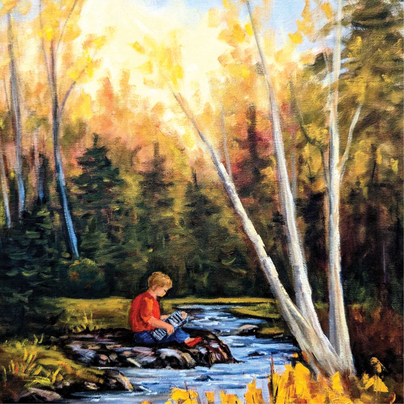Les parents de Xavier lui avaient appris à écouter la peur lorsqu’elle se pointait. Il savait qu’il lui fallait évaluer s’il y avait un réel danger. Comme il avait soif, il décida de se rendre jusqu’au petit ruisseau avant de rebrousser chemin. Il ne devait plus être très loin, maintenant. Tout en restant vigilant, avec son xylophone bien serré contre lui, il avança sur le joli sentier, se laissant à nouveau absorber par ce décor enchanteur. Il entendit d’abord le doux gazouillis de l’eau. Ensuite une odeur vint complètement dissoudre sa peur. C’était celle qui remplissait sa maison chaque année à Noël, car le ruisseau était bordé de sapins. Une brise agitait doucement leurs branches et en exaltait ce parfum si évocateur. C’est alors qu’il se sentit interpelé par le vent.